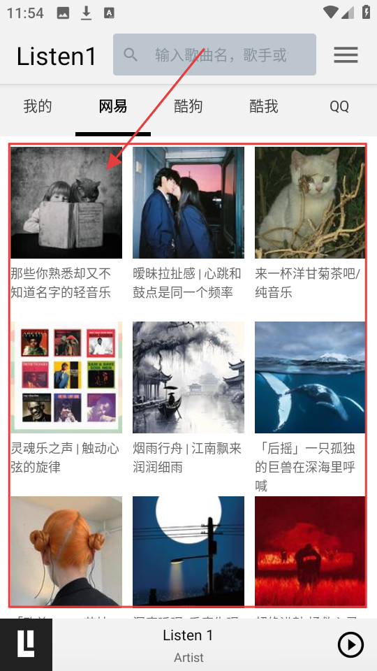 1、在Listen1网易页面,有很多歌单,挑选喜欢的歌单点击,就能进入歌单详情页啦。