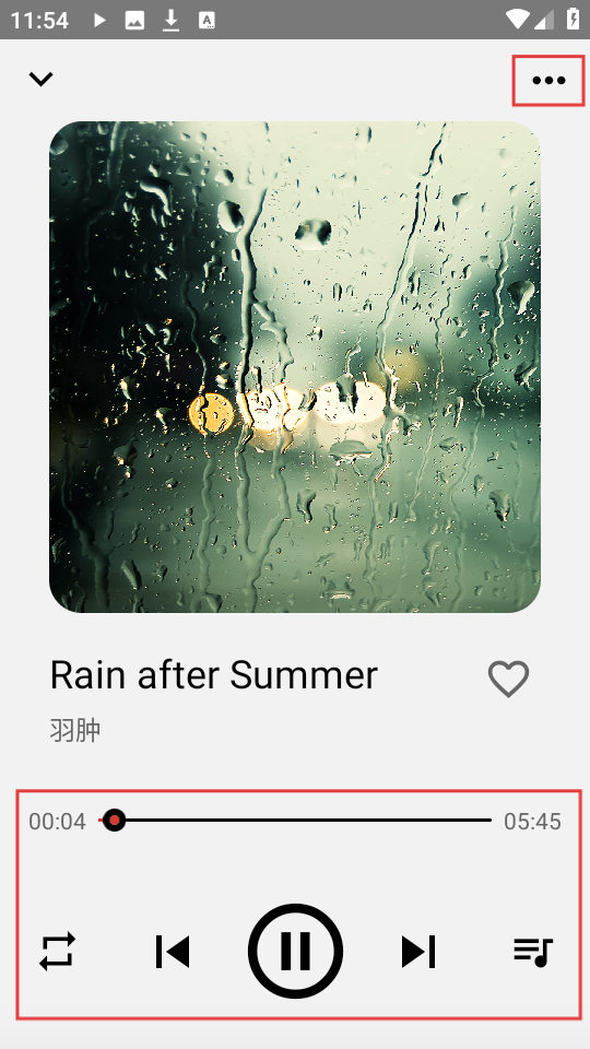 3、歌曲播放时,界面有播放进度条和控制按钮,还能点击右上角三点图标展开更多选项哦。