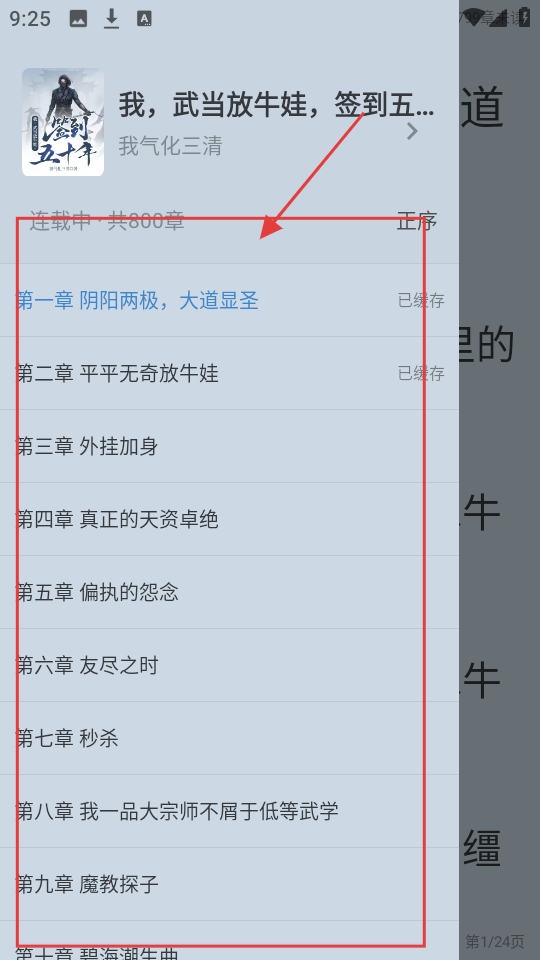 4、打开目录列表后,可选择想要阅读的章节,如第一章等,点击后就能跳转至该章节阅读啦。