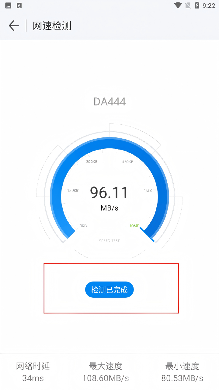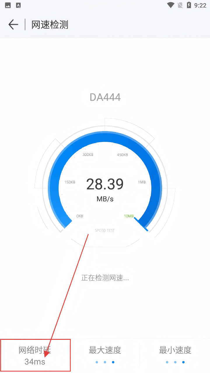 3、检测时延完成后,系统接着检测网速,还能看到网络时延等相关数据,超直观的。