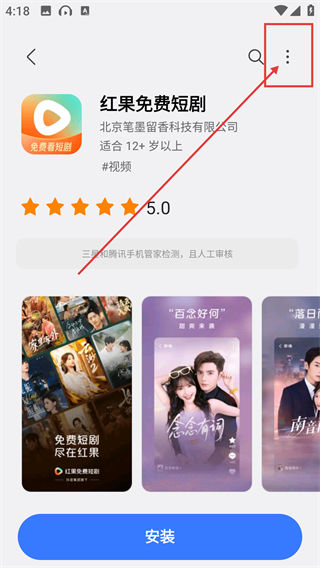 2、进入【红果免费短剧】详情页后,点击右上角的三点图标,就能打开更多操作选项的菜单啦。