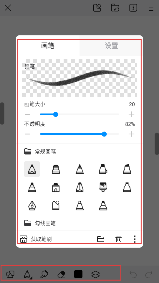 4、新建画布后,可在画笔设置区域选择画笔类型,还能调整画笔大小、不透明度等参数,调节好后就可以开始绘画啦。