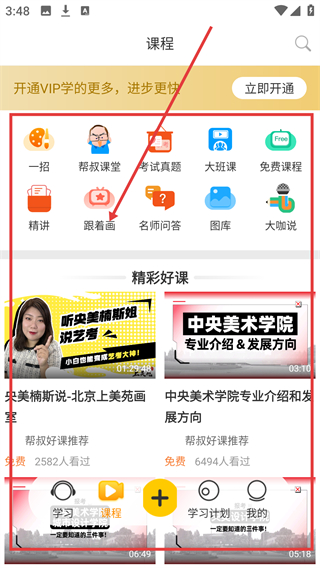 4、切换到课程页,点【跟着画】选项,能进入对应的练习课程页面,跟着教程实操绘画哦。