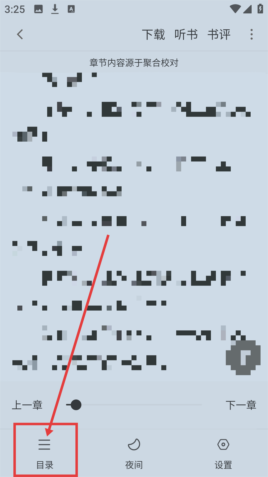 3、在阅读页面,点【目录】,可打开书籍目录页呢。