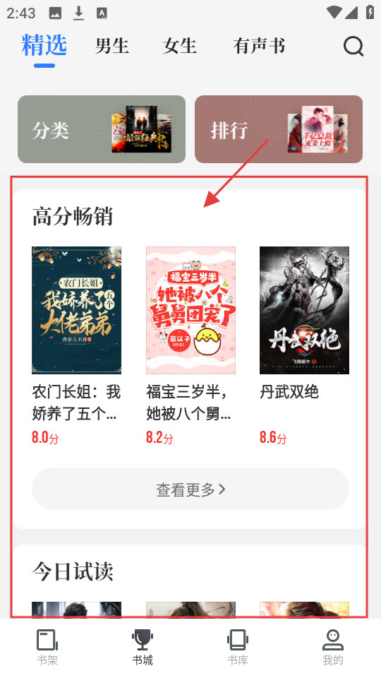 1、在书城高分畅销板块找到《丹武双绝》,点击进入书籍详情页哦。