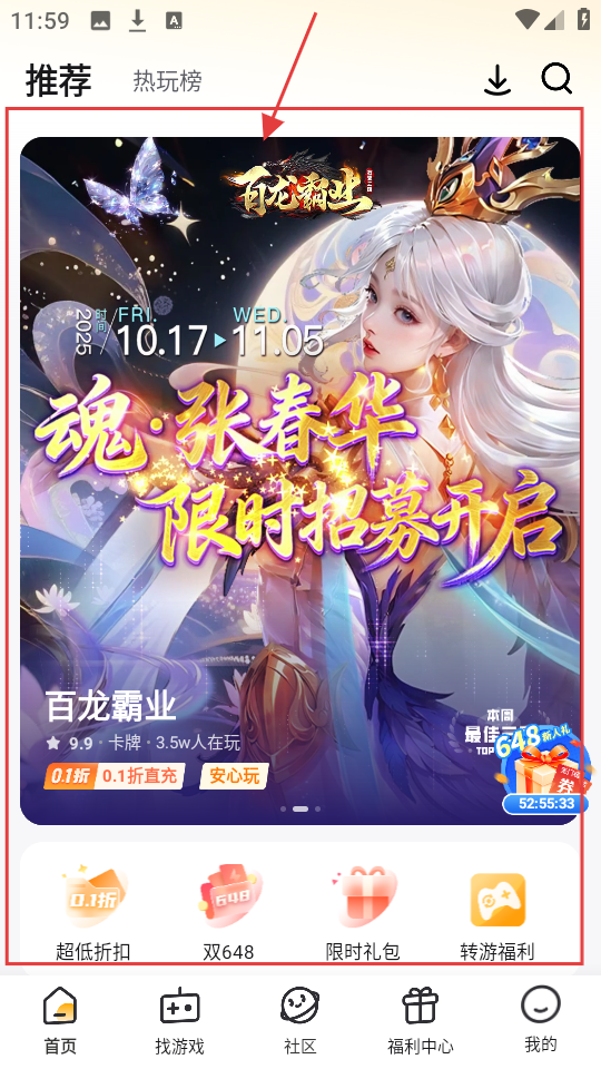 1、在首页看到《百龙霸业》的宣传,点击就能进入游戏详情页,了解游戏信息哦。
