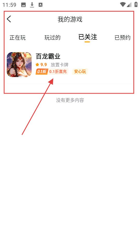 4、在我的游戏页面的已关注列表里,能看到《百龙霸业》,这样就不会错过它的动态啦。