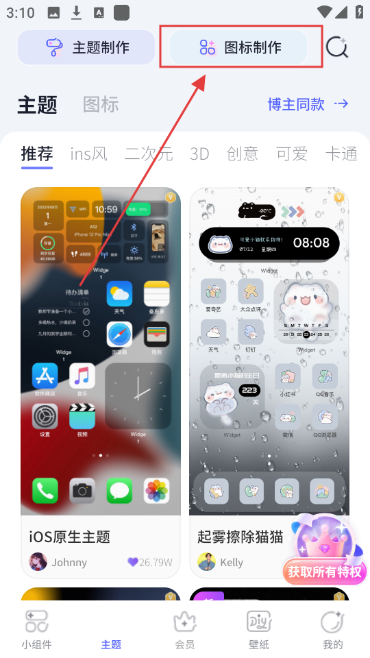1、在主题页面,点击【图标制作】选项,就能进入图标制作界面啦。