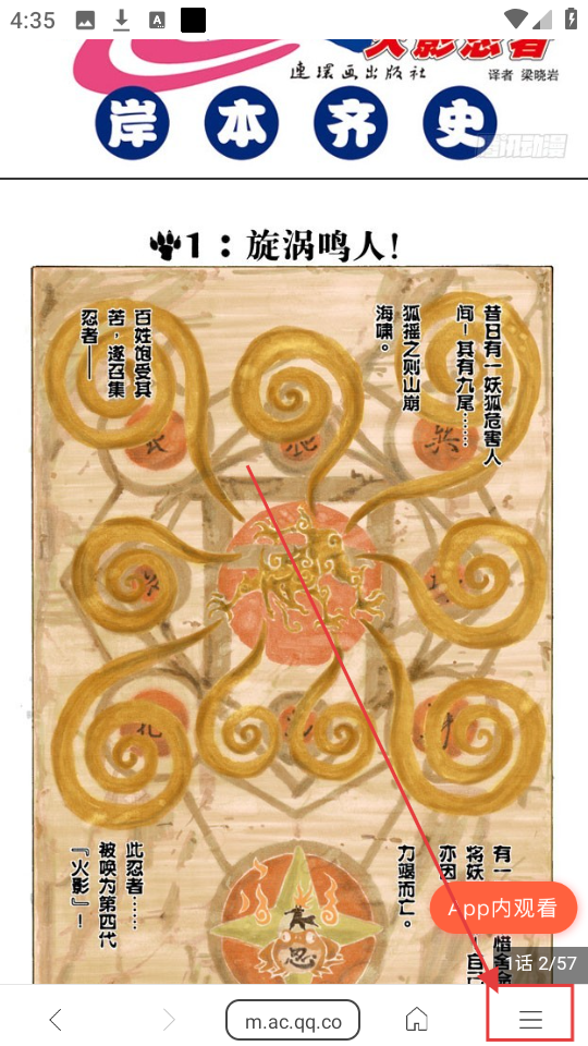 1、打开漫画阅读页面,点击右下角三横线菜单按钮,展开功能选项,准备添加书签啦。