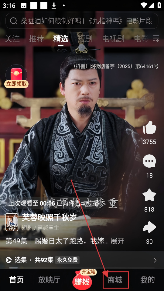 1、在视频播放页面,点击底部【商城】,就能进入商城页面,超多商品任你挑选。
