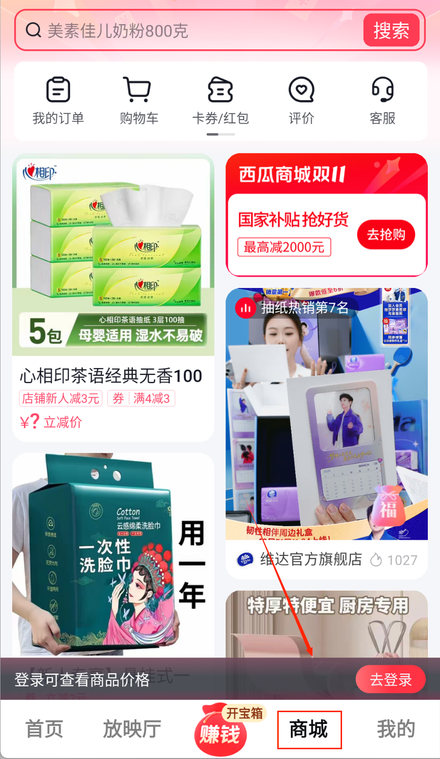 3、商城购物体验很便捷,商品页面会显示热销排名和用户评价,购买前可以查看"抽纸热销第7名"这类参考信息,帮助做出购物决策呀。