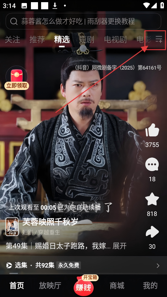 1、在视频播放页面,点击右上角的分类图标,就能打开频道选择界面,超方便切换内容类型。
