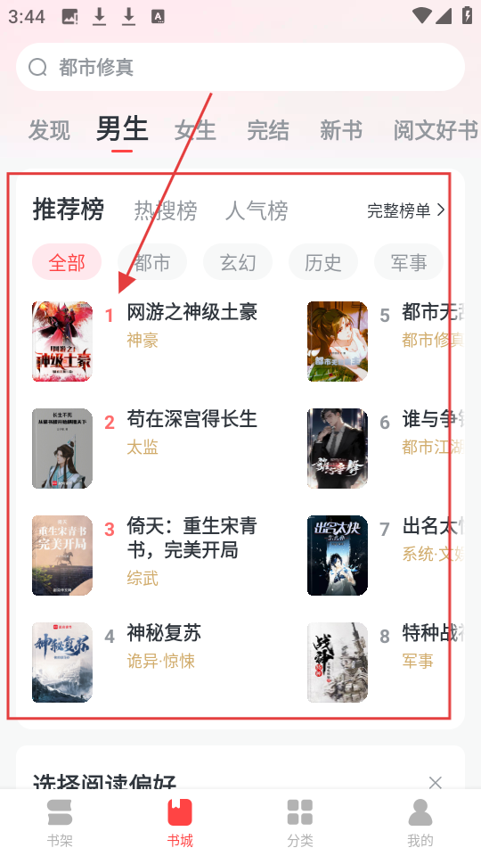 2、在热门榜单中,最热门的小说出现在榜单中,帮助用户做出更好的选择。