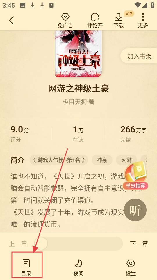 2、在点击书籍详情,小说如果有用户评论即可在这里查看。
