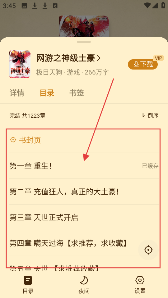 2、在小说详情页,点击左下角【目录】按钮,展开目录列表,以便选择章节哦。