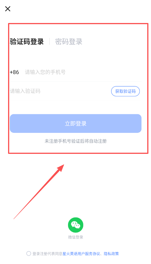 1、首先打开APP,在登录页可以选择验证码或密码登录,输入你的手机号并获取验证码,填写后即可完成登录。
