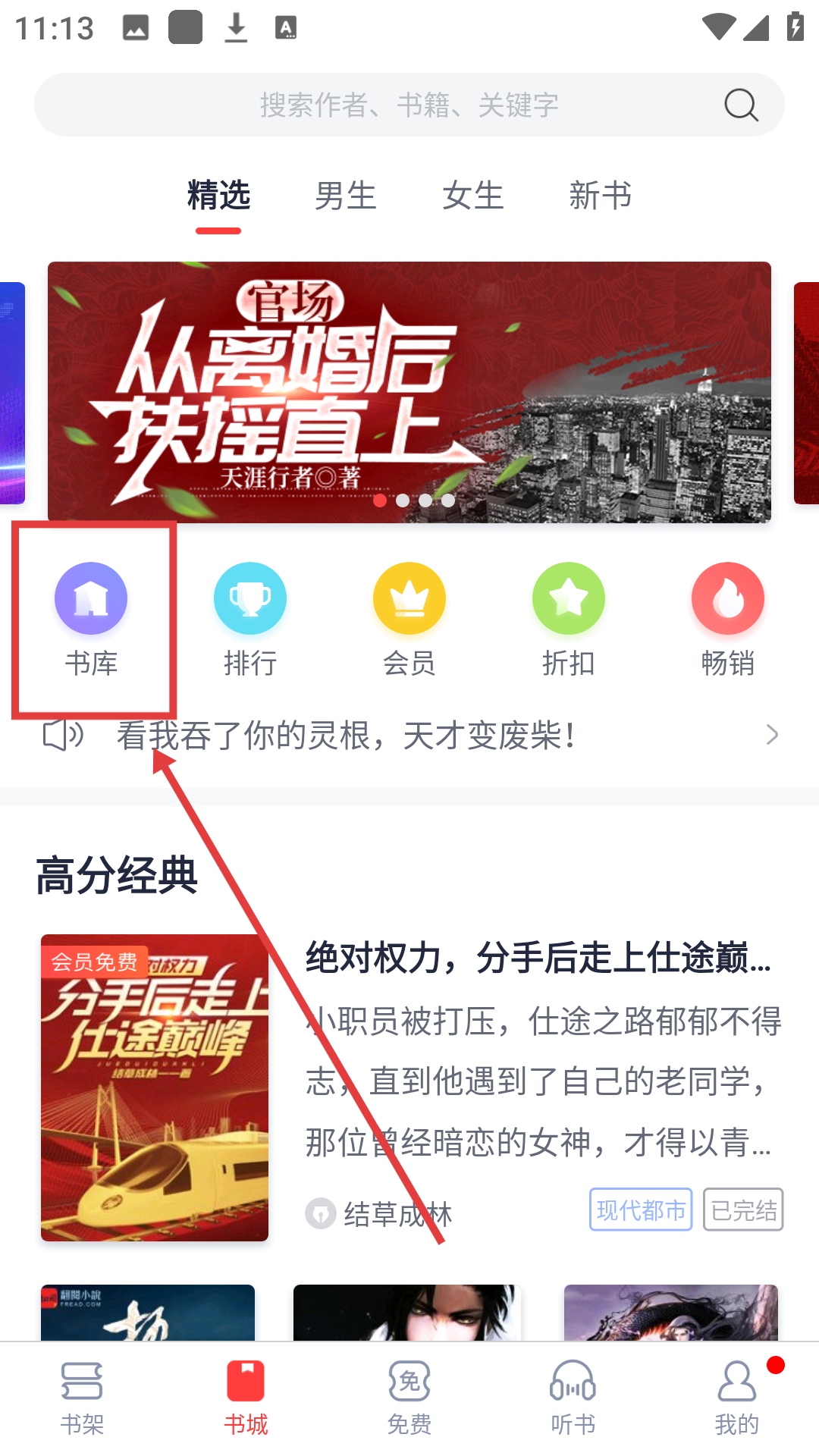 1、点击【书库】,进入书库界面,可选择喜欢的小说类别哦。