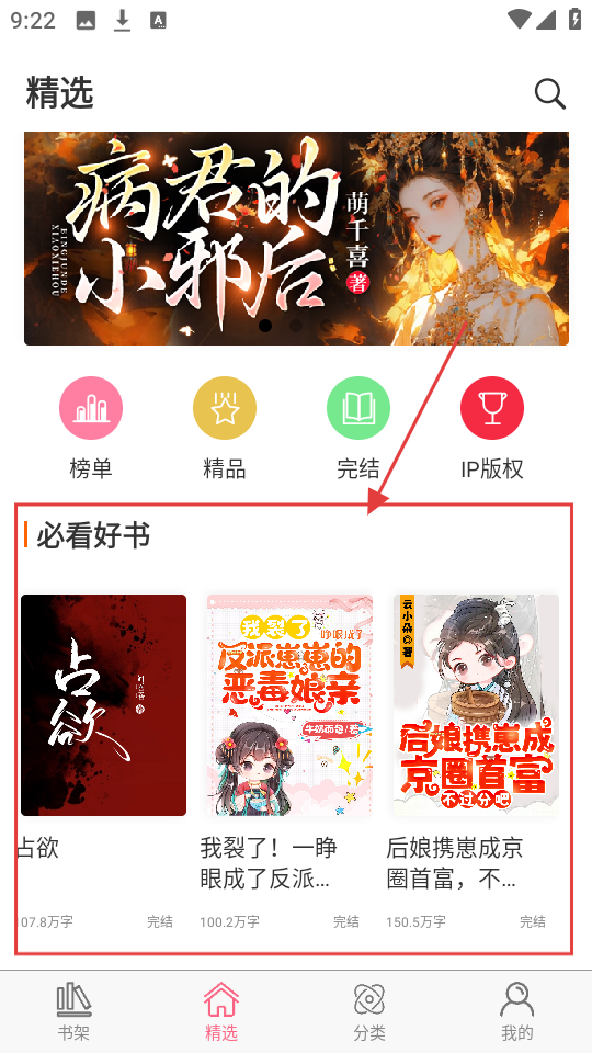 1、在软件精选页面必看好书板块,点击书籍,可进入书籍详情页,了解书籍信息啦。