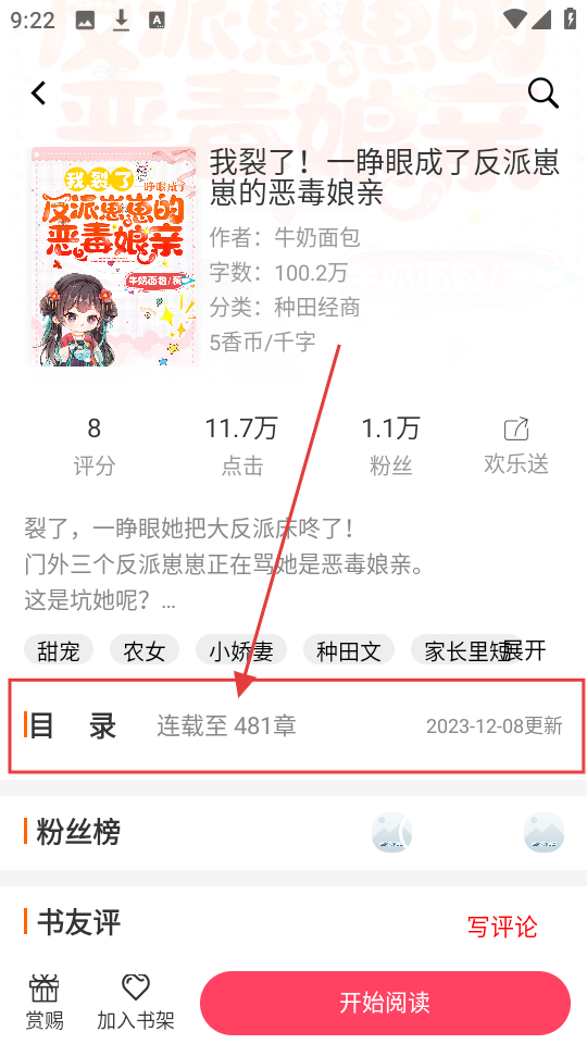 2、进入书籍详情页后,点击【目录】,可进入章节列表页面,查看书籍的章节内容哦。