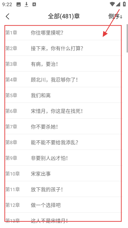 3、在章节列表页面,选择【第9章非要别人凶才怕!】章节,可进入该章节的阅读页面,准备阅读章节内容啦。