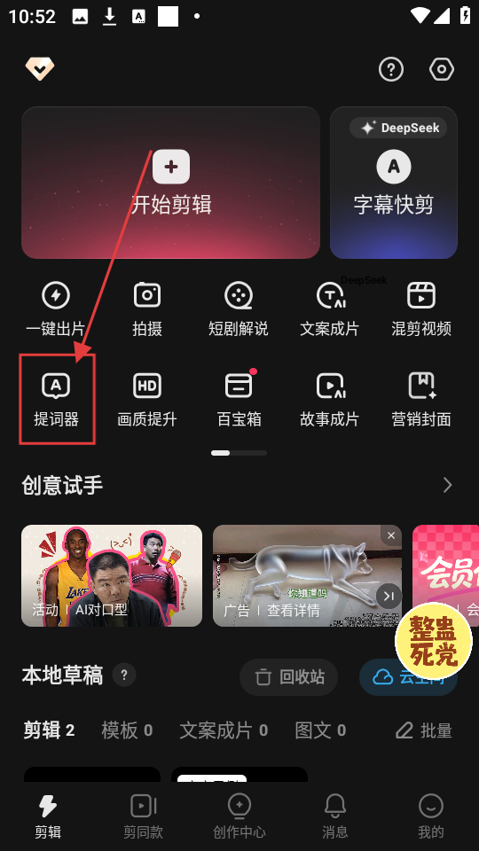 1、点击【提词器】,进入提词器界面,可选择热门文案类型,助力视频创作哦。