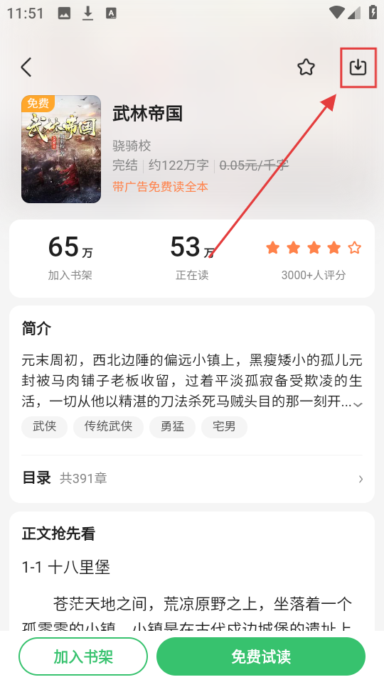 2、点击感兴趣的书籍进入详情页后,点击右上角下载按钮,可触发登录提示哦。