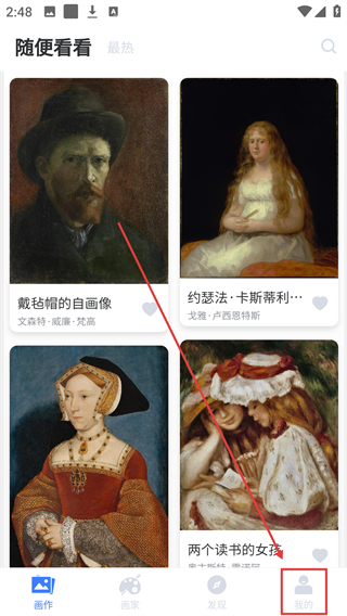 1、查找不同类型的画作,您可以选择人物的不同特征,找到您想欣赏的名画让你操作。