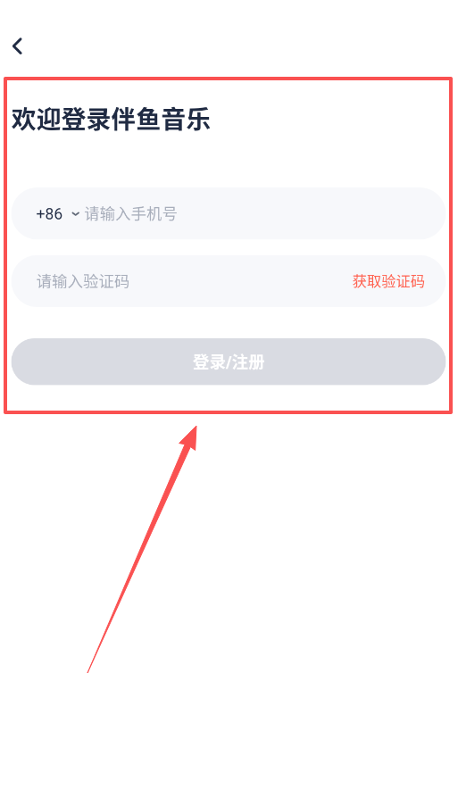 1、首先打开伴鱼音乐app,在登录页面输入手机号和验证码完成注册登录,这样就能解锁所有基础功能了。