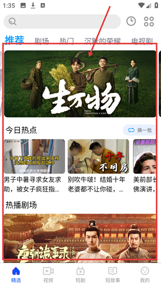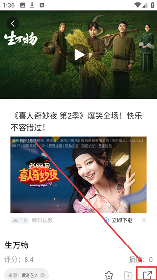 1、在影视平台精选页面,点击目标内容《生万物》的封面,可进入内容详情页,准备进行分享操作啦。