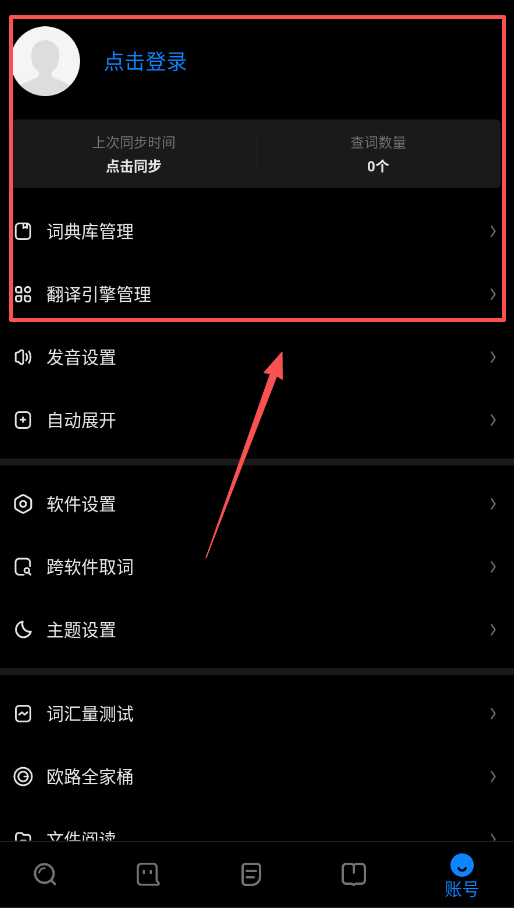 4、软件的个性化设置藏在最后一张图的菜单里,使用前记得先“点击登录”同步数据。