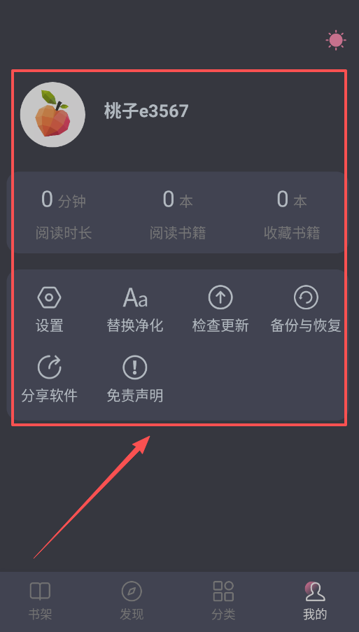 1、打开软件,底部导航栏是核心,所有功能都围绕“书架、发现、分类、我的”这四个入口展开。