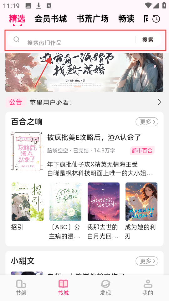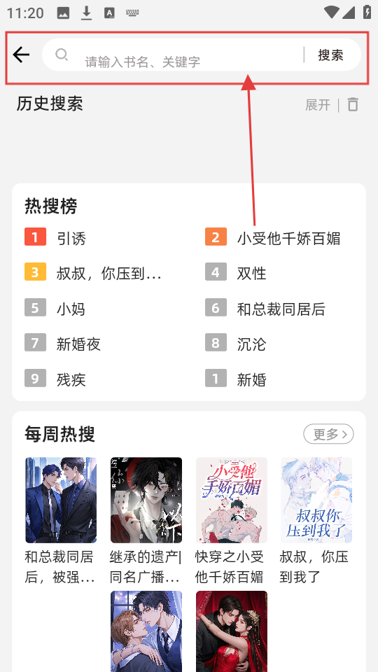 1、点击书城的搜索框,就能进入搜索页面,查找想看的小说啦。