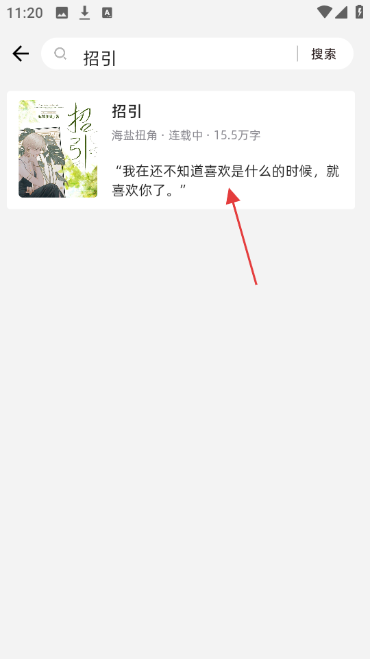 3、在搜索结果里点击《招引》,就能进入小说详情页,查看小说信息啦。