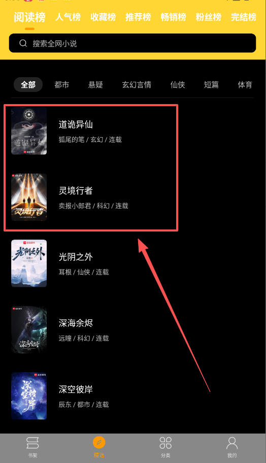 3、锤子小说去广告版这里所有的小说都有详细的分类,用户也可以看到最喜欢的小说内容。