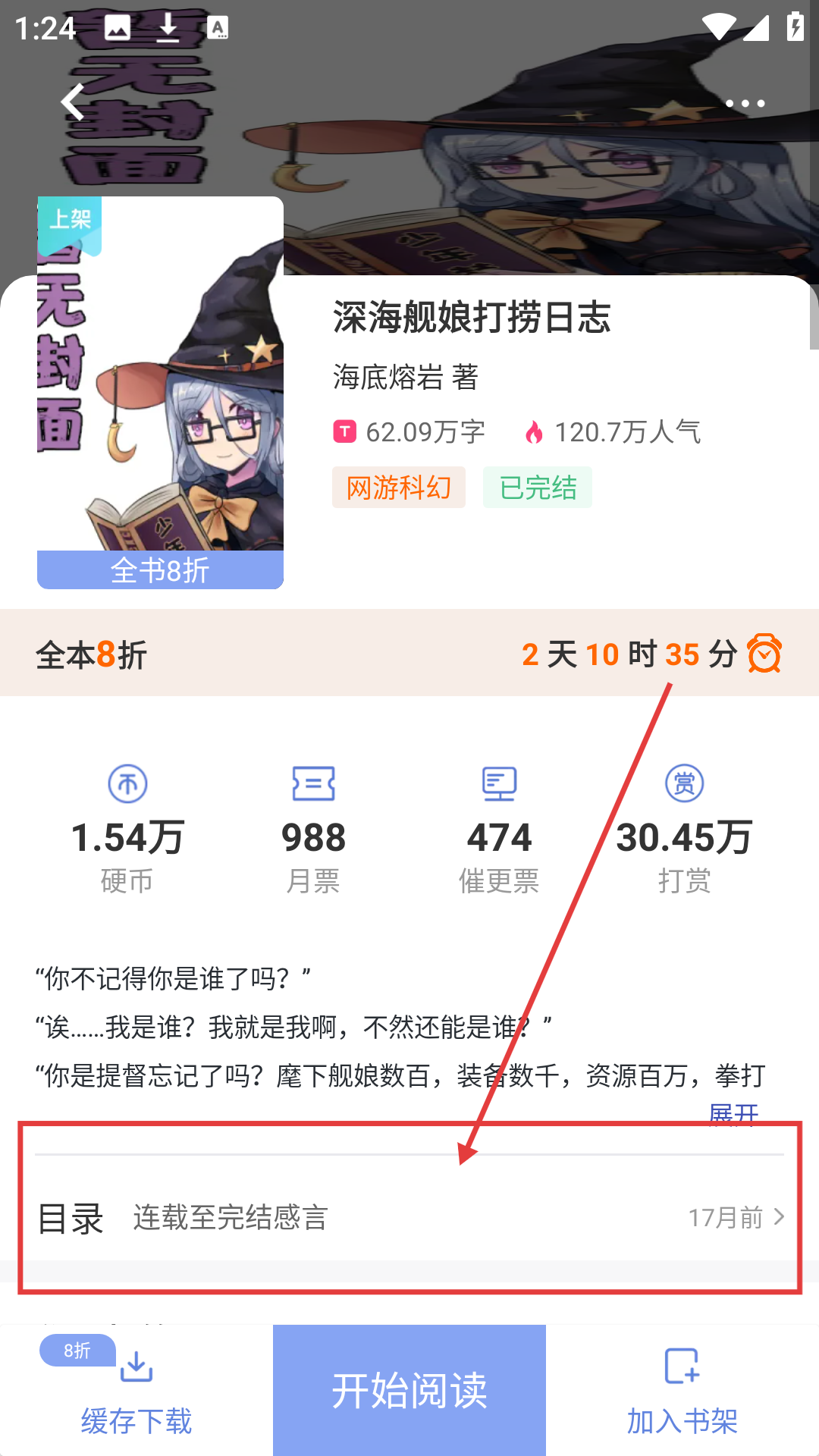 1、在书城页,找到【深海舰娘打捞日志】,点进去就能查看书籍详情啦。
