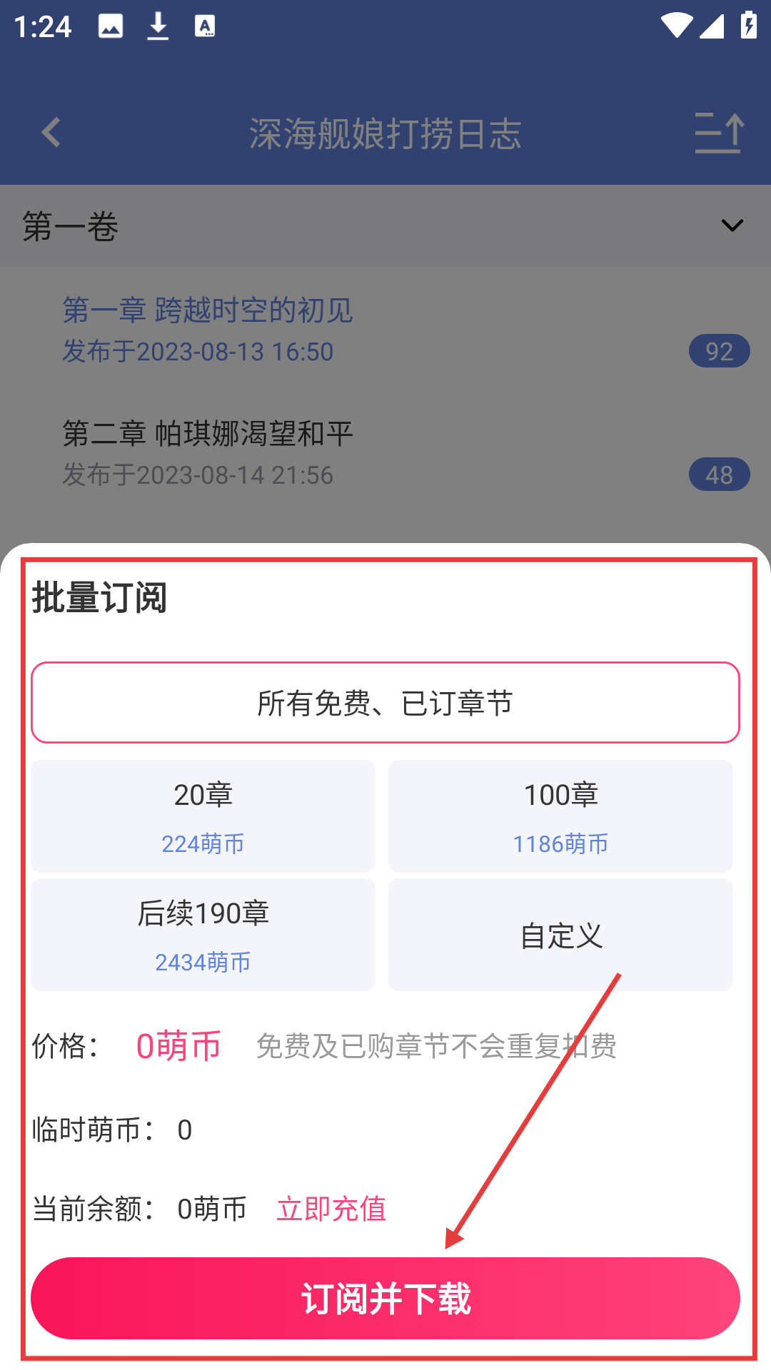 4、若要批量下载章节,点【订阅并下载】,可选择章节数量进行订阅下载哦。