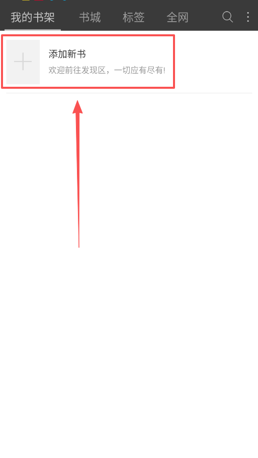 4、如果书架空空,首页会提示“添加新书”,点击后引导去“发现区”也就是书城或标签页,按榜单或分类浏览就能找到想看的书了。
