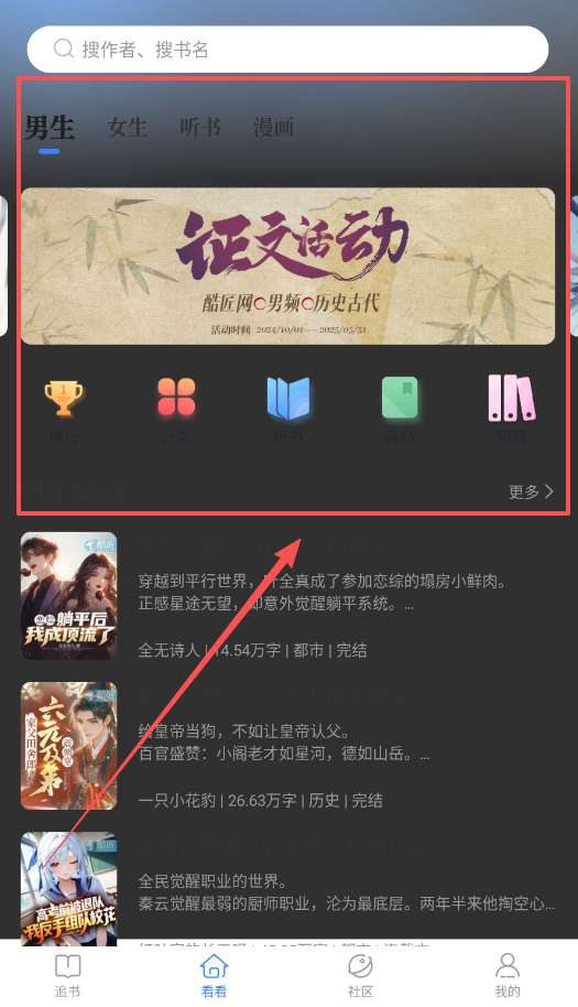 1、酷匠阅读无广告版观看让你满意的好小说,内容非常的齐全,适合书迷群体进行观看。