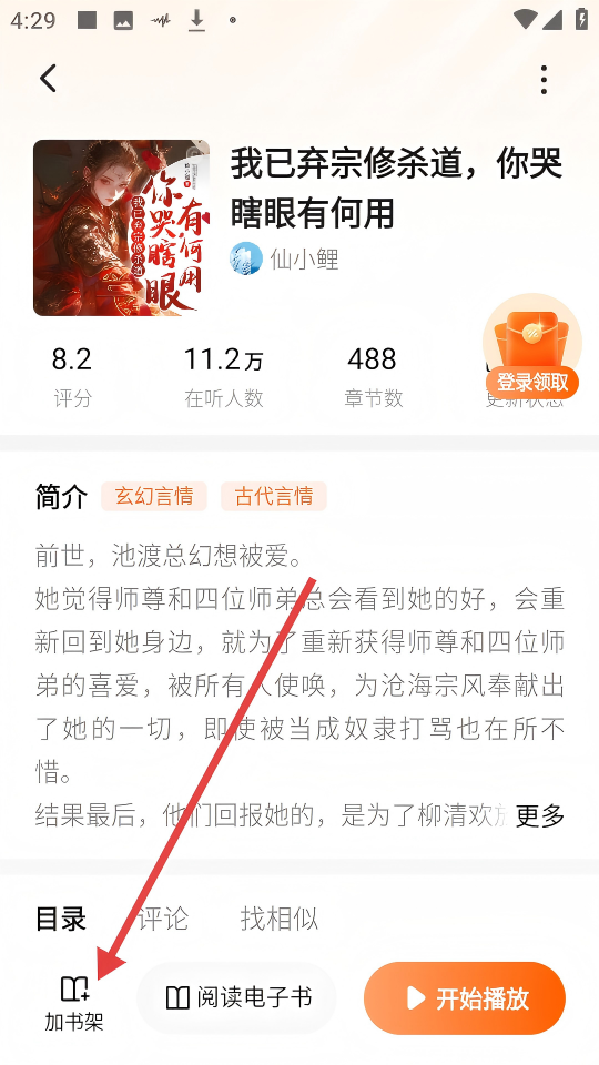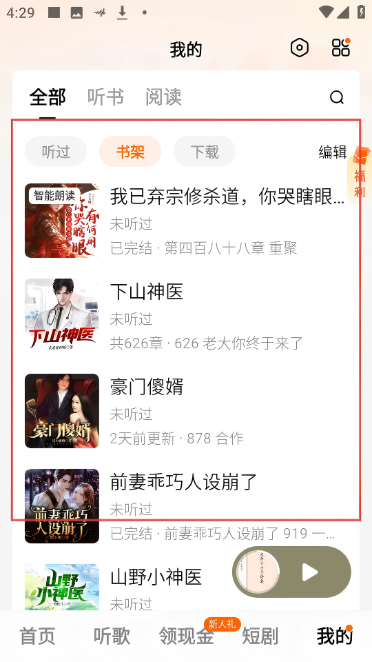 3、番茄畅听赚钱版可以把喜欢的故事放到书架上,享受各种精彩的阅读体验。