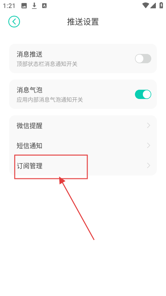 3、在推送设置里找到【订阅管理】,点击进入就能管理订阅内容,超实用的哦。