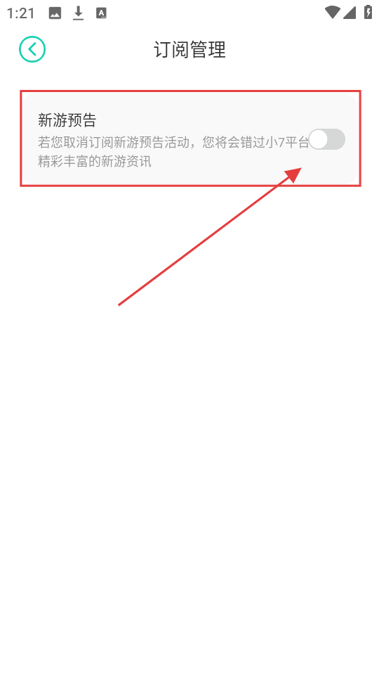 4、在订阅管理中,找到【新游预告】开关,根据喜好开启或关闭,这样就不会错过新游资讯啦。