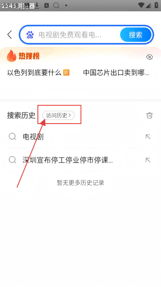 2、搜索后,在搜索页面有【访问历史】按钮,点击它,能查看之前访问过的内容,方便回顾哟。
