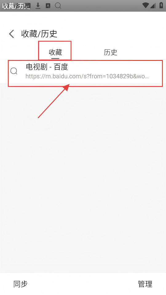 4、切换到【收藏】页面,能看到收藏的内容,像【电视剧-百度】链接,方便快速访问收藏的网页啦。