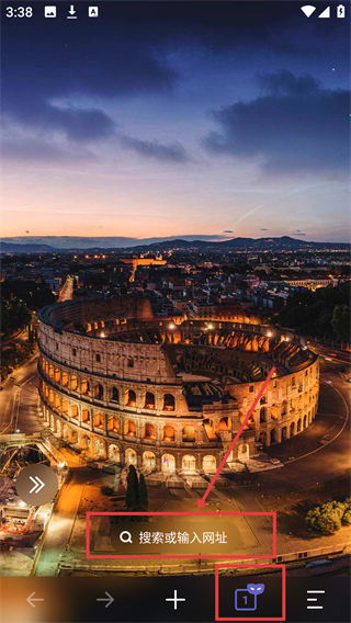 3、进入无痕模式后,点击搜索框,可准备输入网址或搜索内容啦。