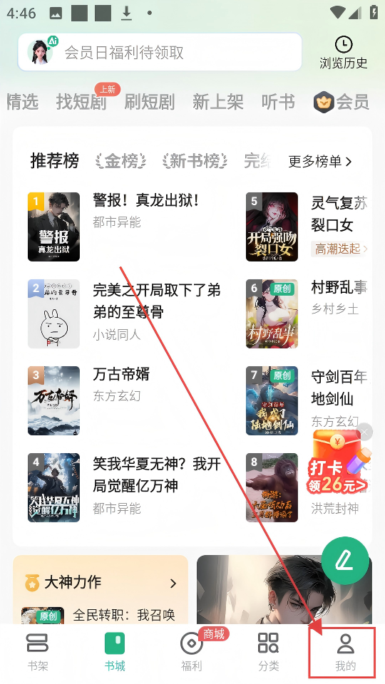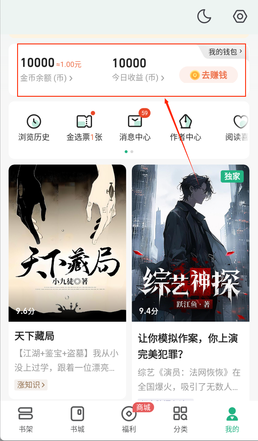 1、初次使用建议先登录账号,点击“我的”页面顶部的登录入口完成认证,这样就能使用书架同步、加入作者中心等更多高级功能啦。