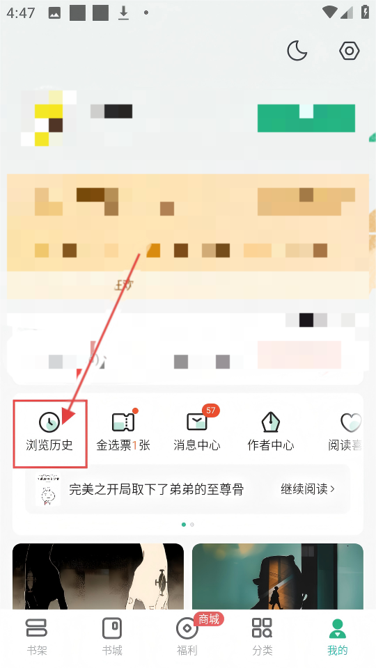 2、在个人中心,找到【浏览历史】,点击它就能查看之前浏览过的小说,超方便回顾。
