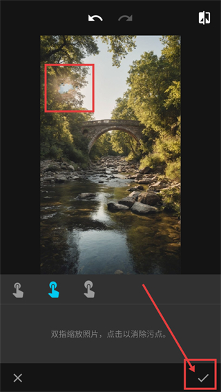 4、完成污点修复后,点击右下角的对勾按钮,确认该操作,即可保存当前的调整效果啦。