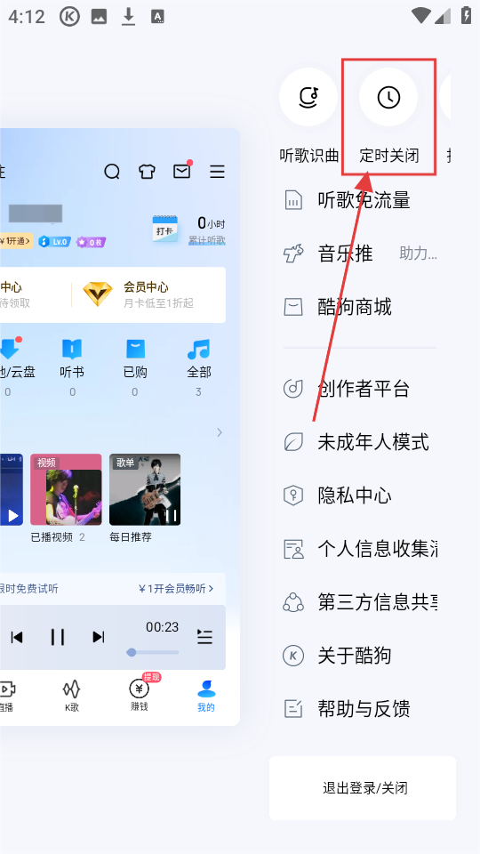 2、在展开的菜单中,找到【定时关闭】选项,点击它,进入定时关闭设置页面哦。