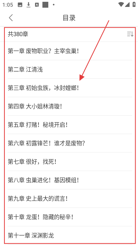 3、在目录页面,可浏览各章节,选择感兴趣的章节,如第六章,点击可进入章节阅读页面啦。