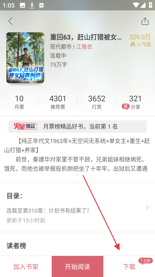 2、在小说详情页,点击【下载】按钮,进入批量下载页面哦。